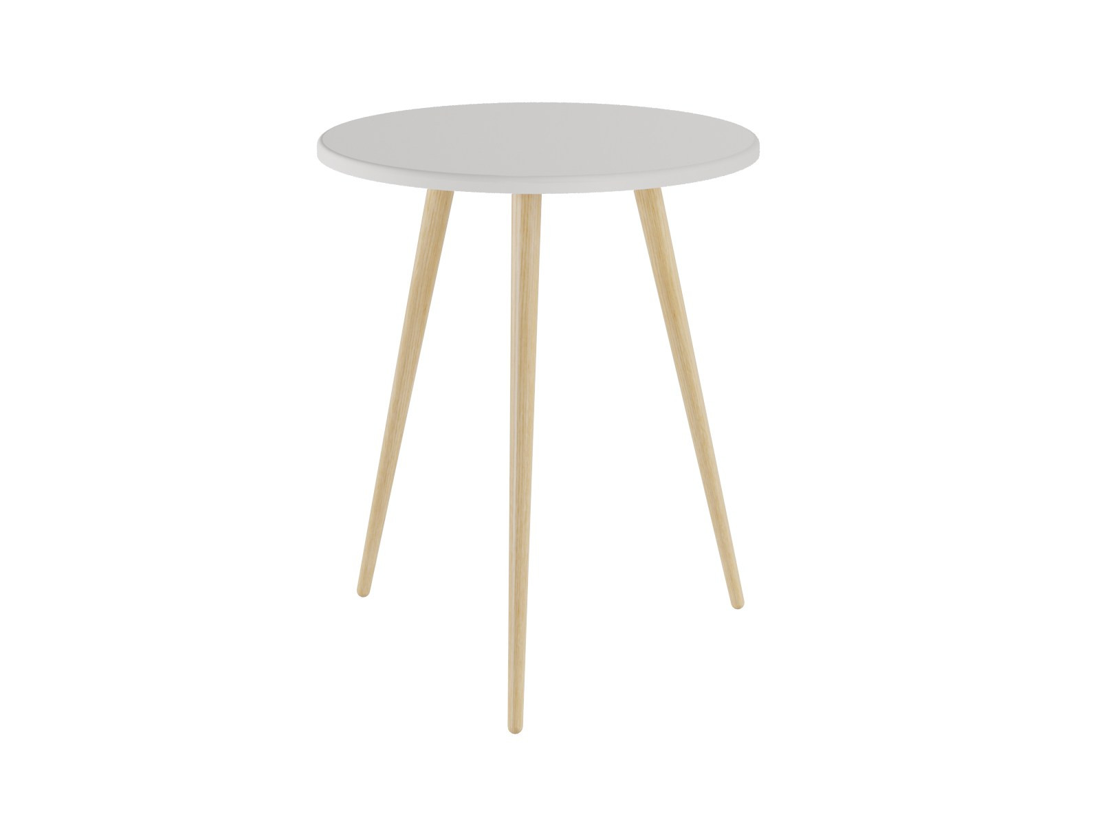 В дизайне использована простая геометрия столешницы в сочетании с деревянными опорами.