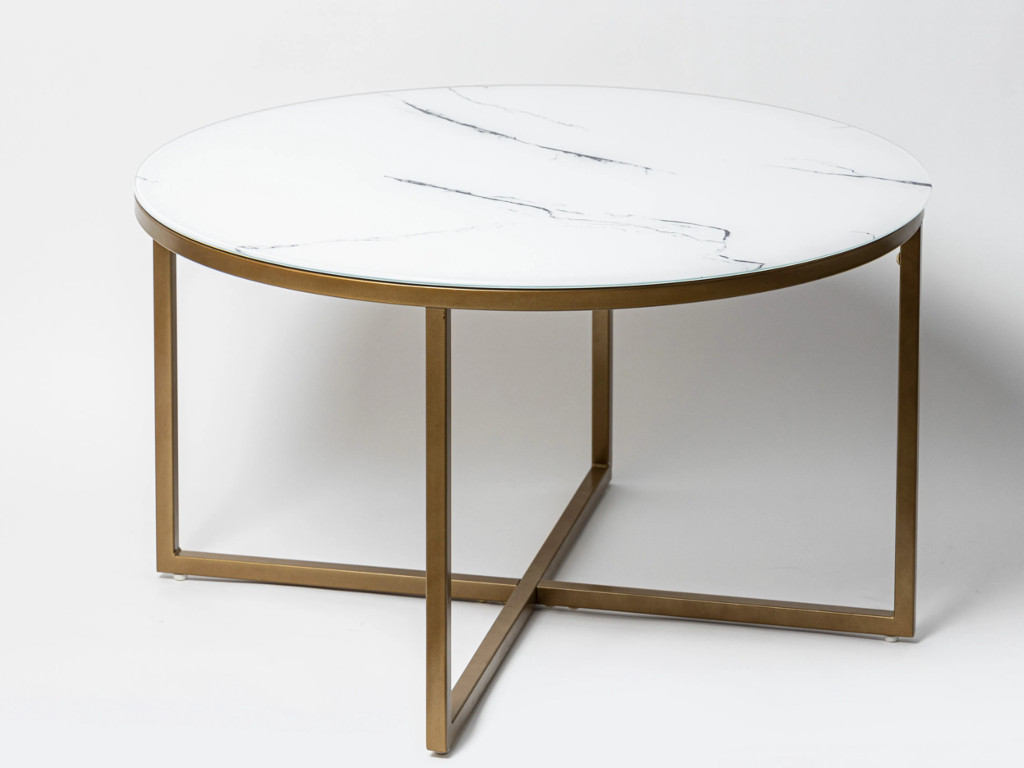 Материал: Столешница- закаленное стекло, ножки металлические,окрашенные в золотой цвет