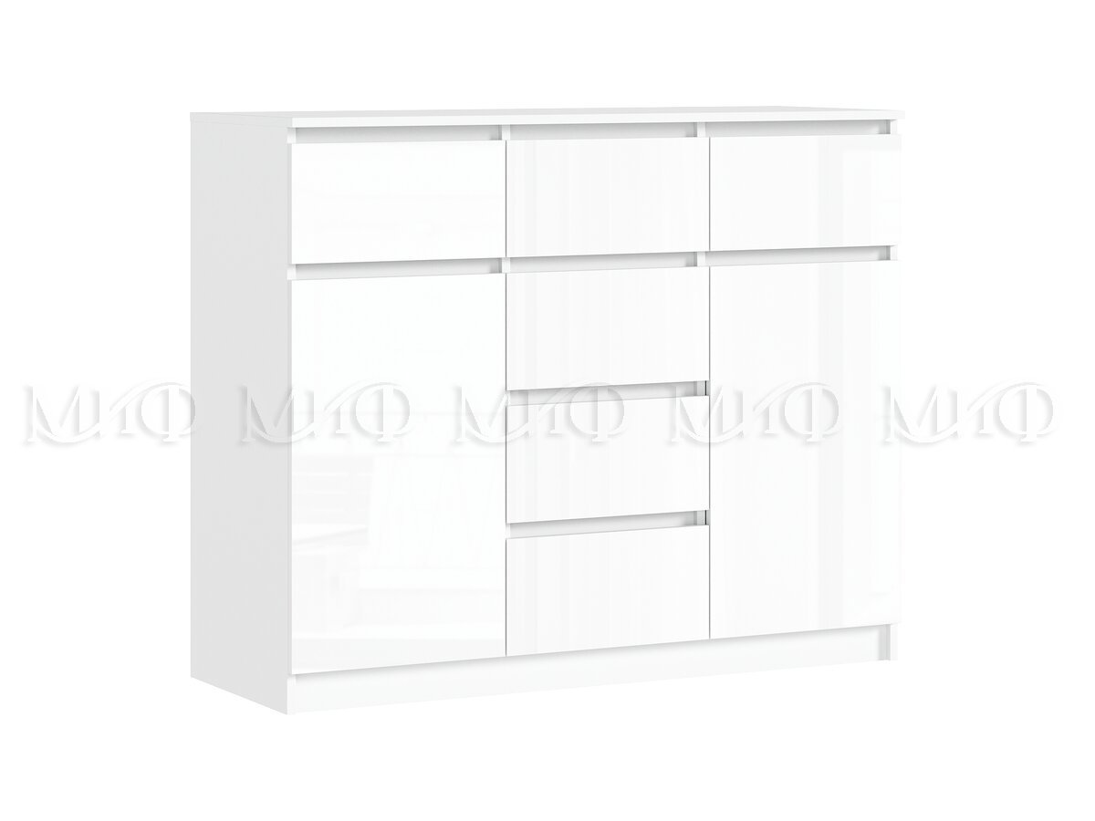 - Комод 1200 (2 двери 6 ящиков) Челси Белый Глянец, Белый