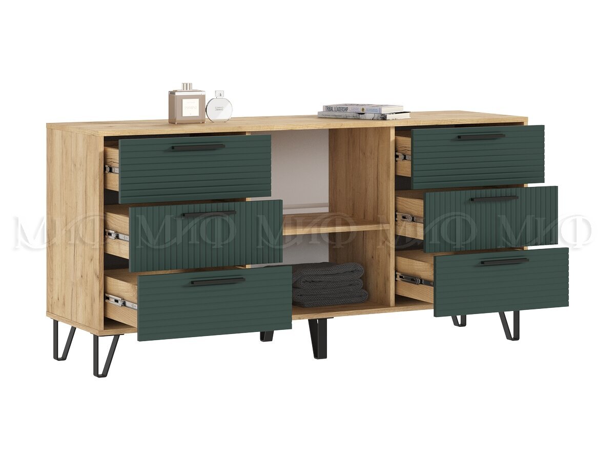 - Комод (1500) Флэш Браш Мени Грин, Дуб Крафт
