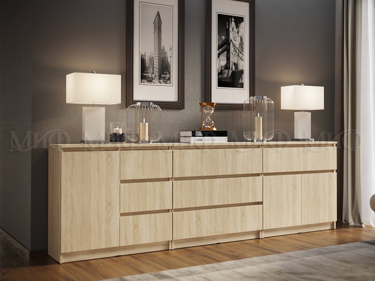 - Комод 800 3 ящика Челси дуб сонома