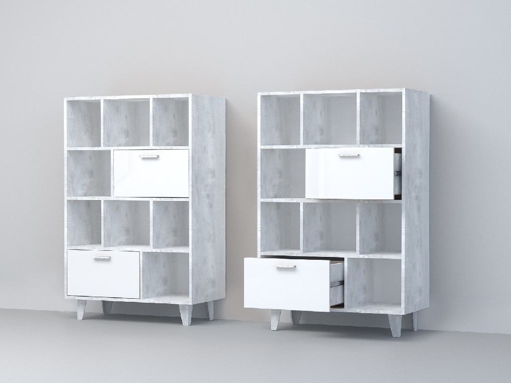 - Комод Эго К-1 2 ящика бетон светлый/белый глянец на ножках