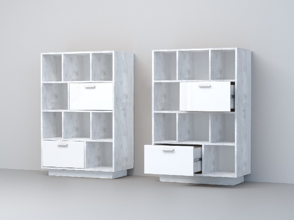 - Комод Эго К-1 2 ящика бетон светлый/белый глянец на цоколе