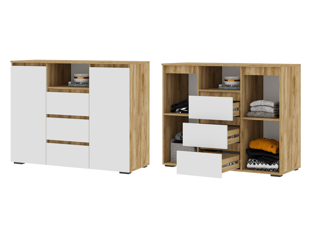 Комод Хелен КМ 01 Дуб Крафт золотой/Белый шагрень