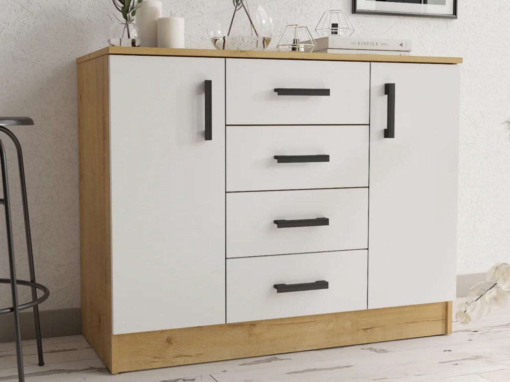 - Комод К1000-2Д ЛДСП Дуб Вотан-Белый гладкий