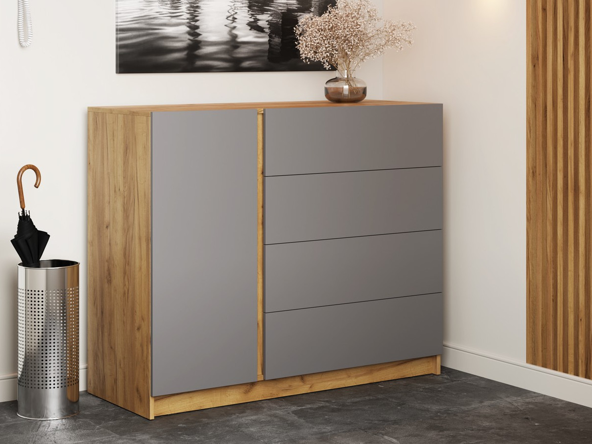 - Комод КМ-001 Бостон ЛДСП дуб крафт золотой-серый шифер
