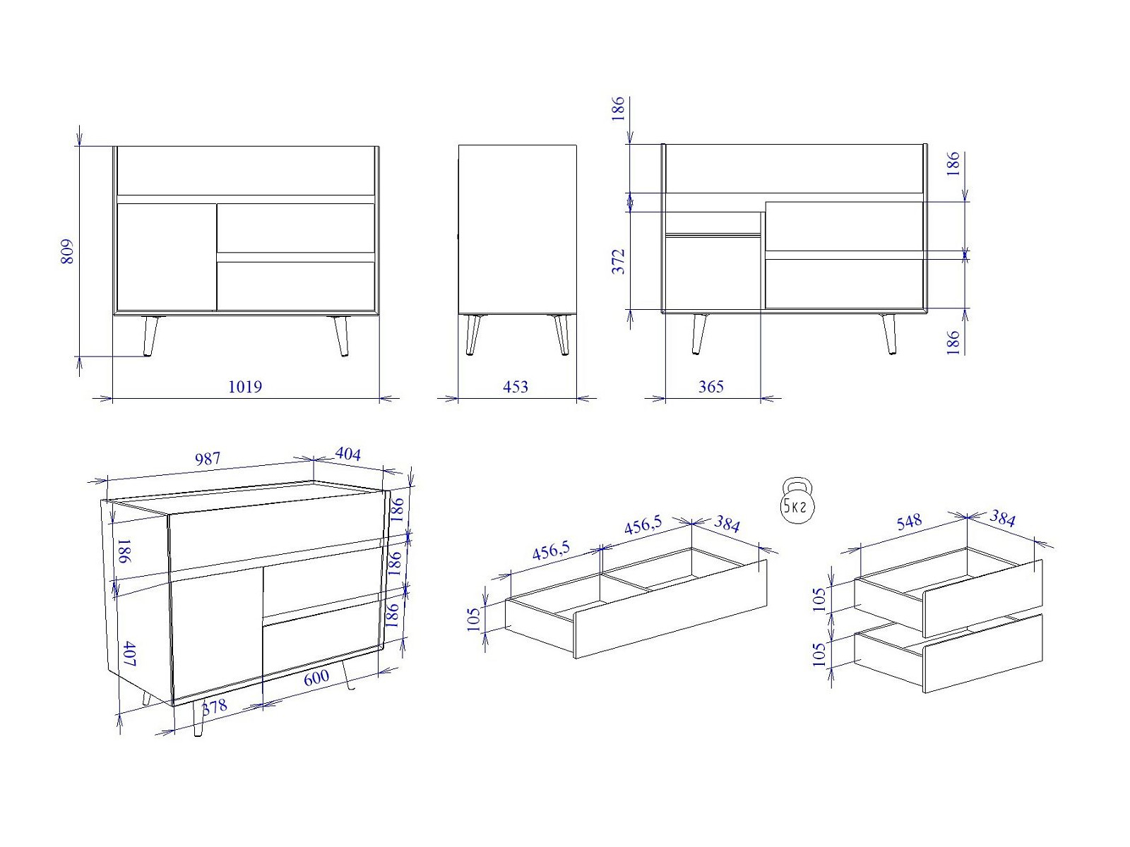 Макс.нагрузка на ящик (кг): 10