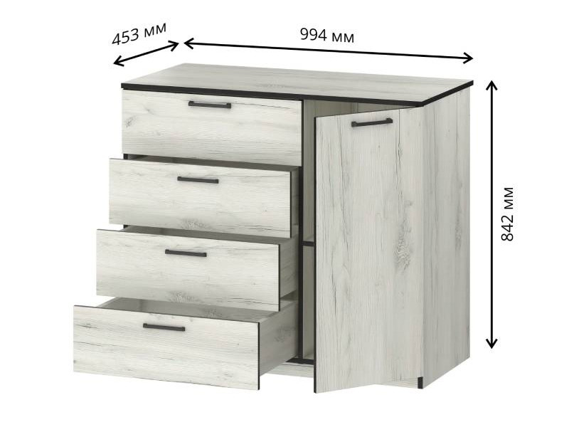 Комод с 4-мя ящиками и дверкой СГ Вега