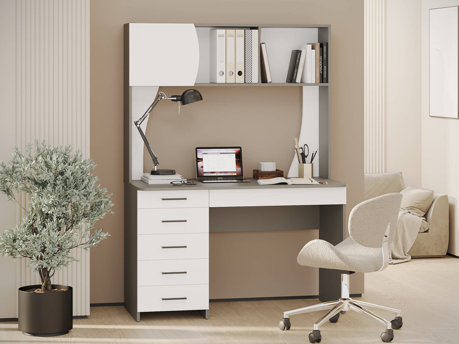 - Стол рабочий Сигма 6-0606 Графит, Белый
