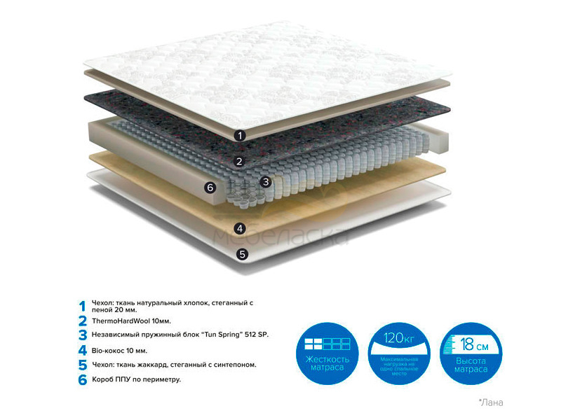 - Матрас Lana No Flip ширина 1400