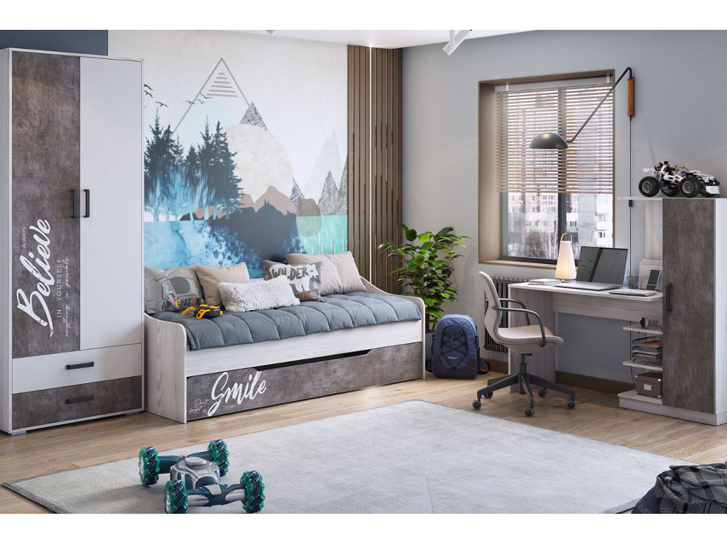 Цена за комплект: Шкаф для платья и белья с 2мя ящиками, Кровать-софа выдвижная, Стол компьютерный УНИ (Софт)