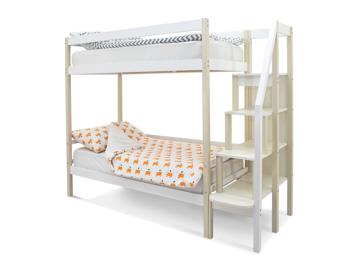 Двухъярусная кровать Svogen бежево-белый