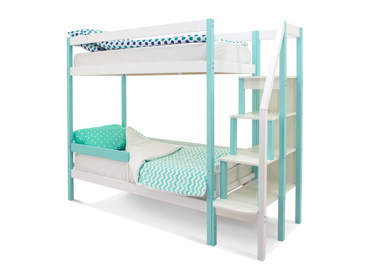 Двухъярусная кровать Svogen с бортиком мятно-белый