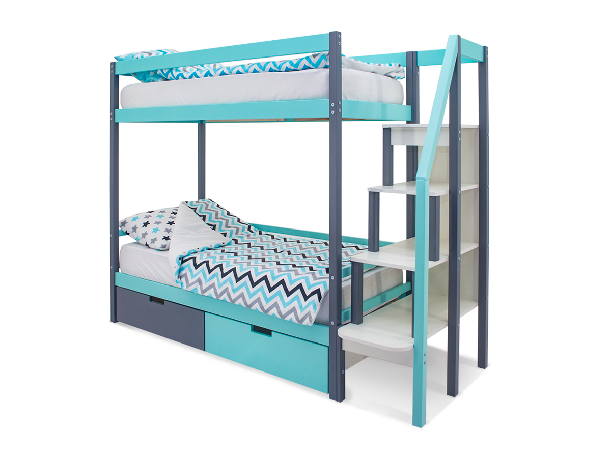 Двухъярусная кровать Svogen с ящиками графит-мятный