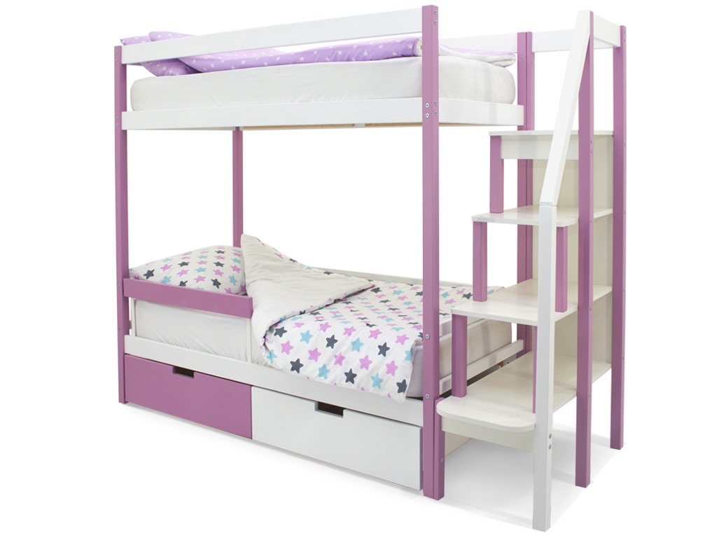 Двухъярусная кровать Svogen с ящиками и бортиком лаванда-белый