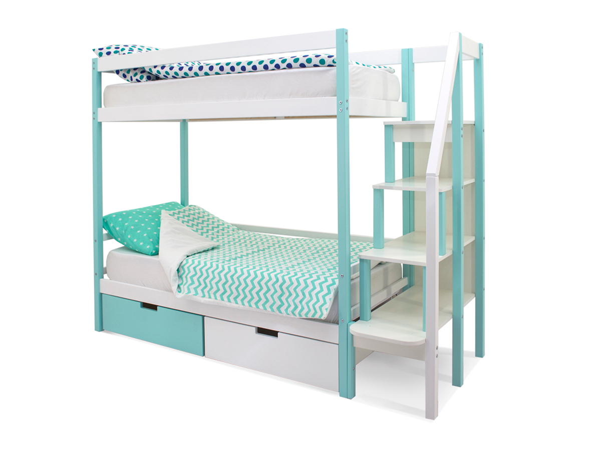 Двухъярусная кровать Svogen с ящиками мятно-белый