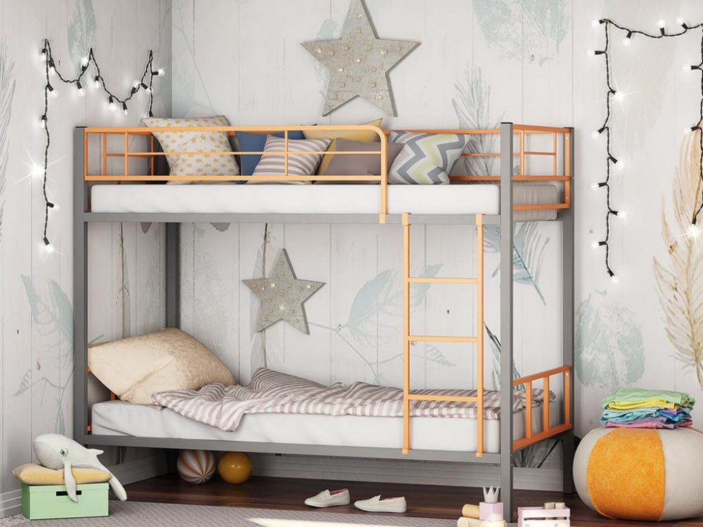 - Двухъярусная кровать Севилья-2.01 комбо Серый/Оранжевый