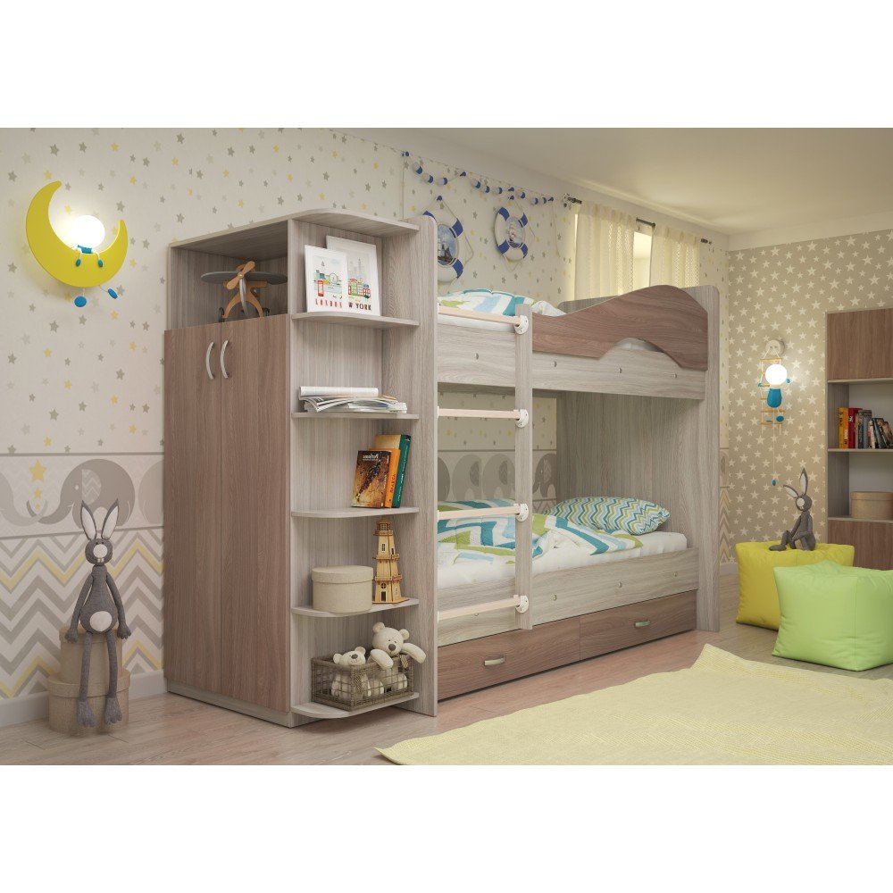 Двухъярусная кровать со шкафом Мая латофлексы ясень