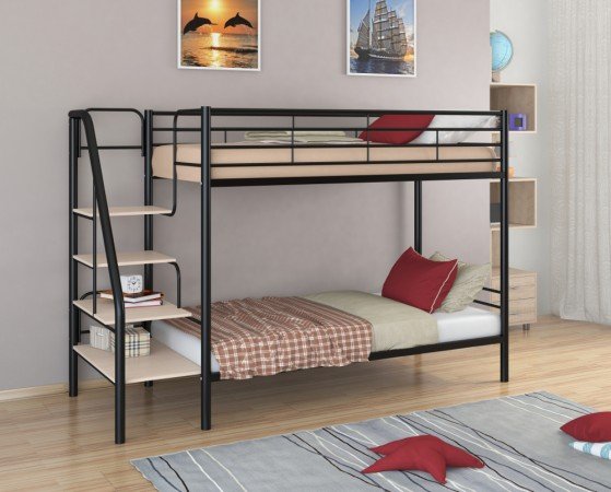 - Двухъярусная кровать Толедо черный/молочный