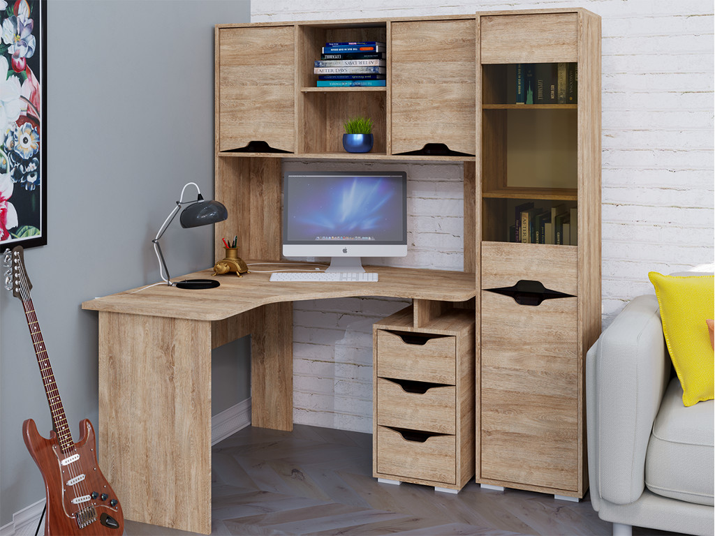 - Компьютерный стол КЛ-1.3 с пеналом Дуб баррик фасад Версаль-5