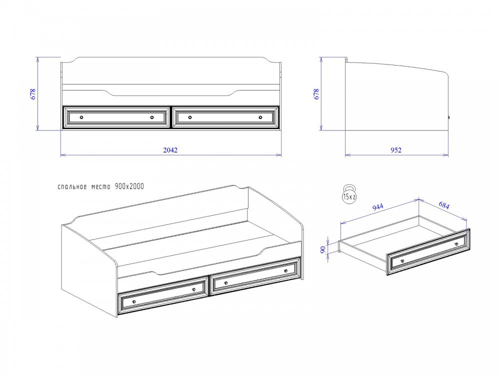 Спальное место: 900*2000 мм