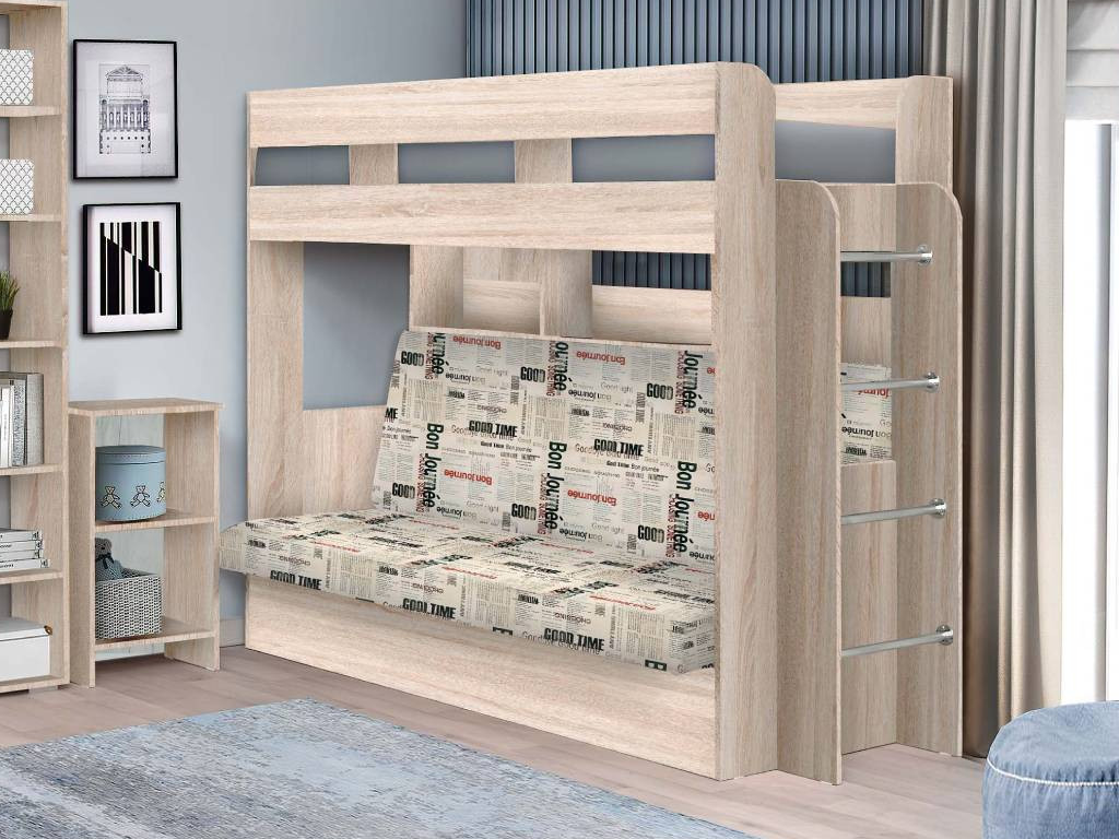 - Компактный и функциональный вариант. Максимальная нагрузка кровати на втором ярусе: 60 кг, дивана: 170 кг.