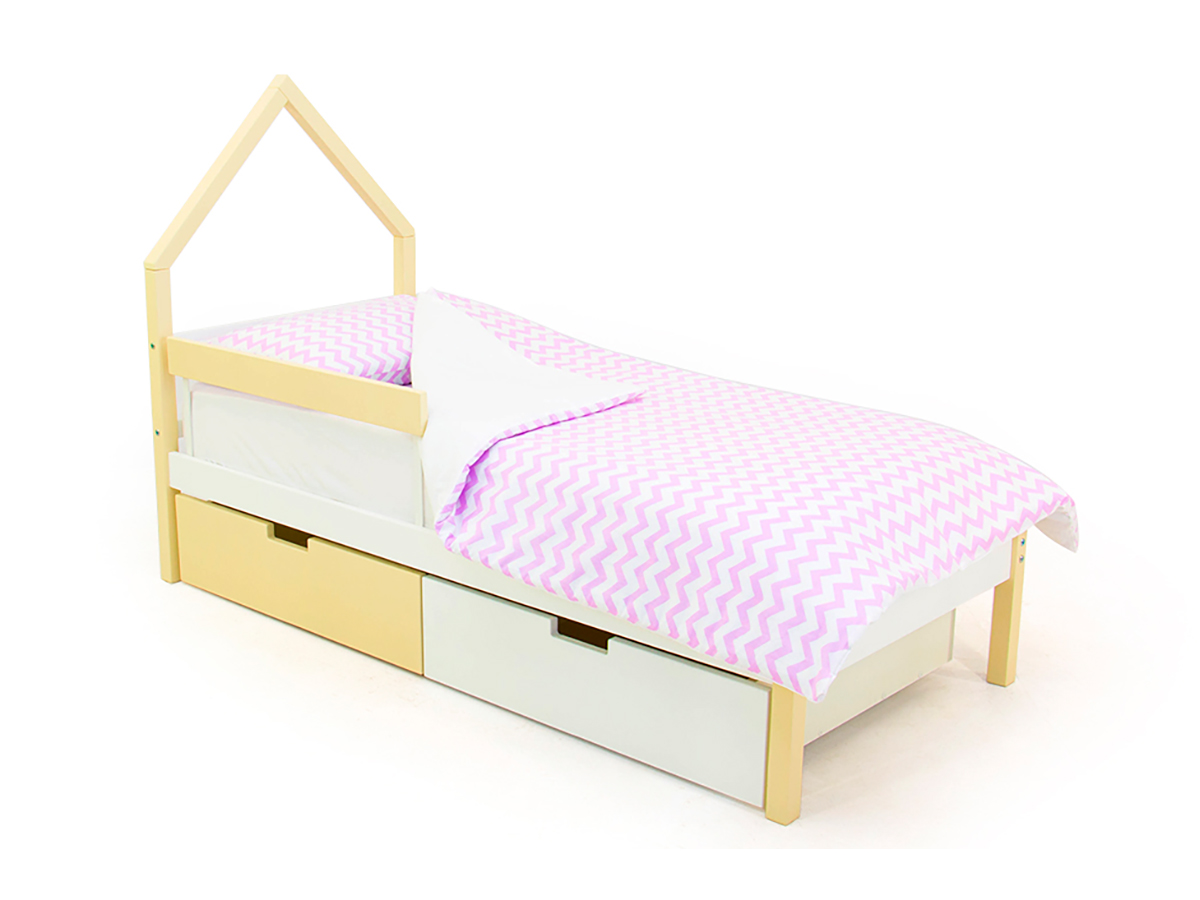 - Кровать-домик мини Svogen с ящиками и бортиком бежево-белый