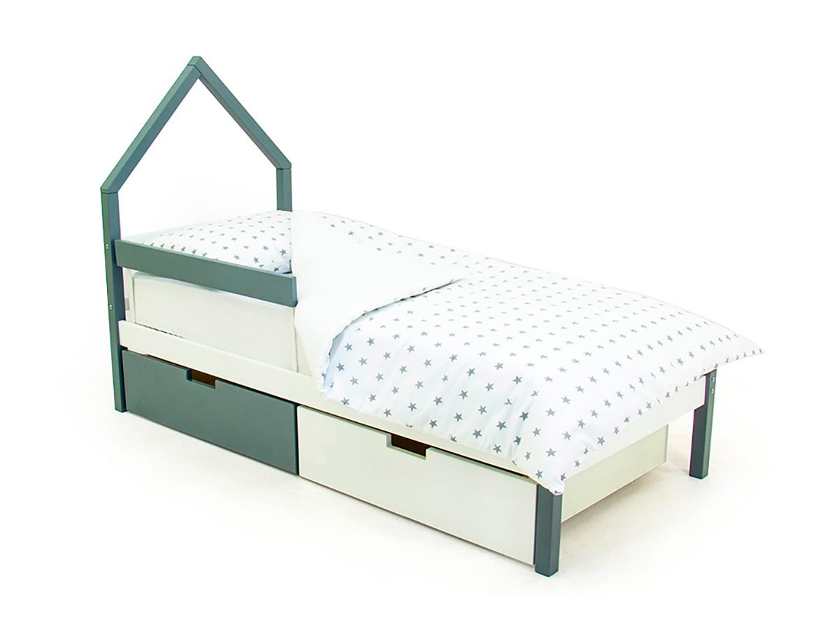 - Кровать-домик мини Svogen с ящиками и бортиком графит-белый