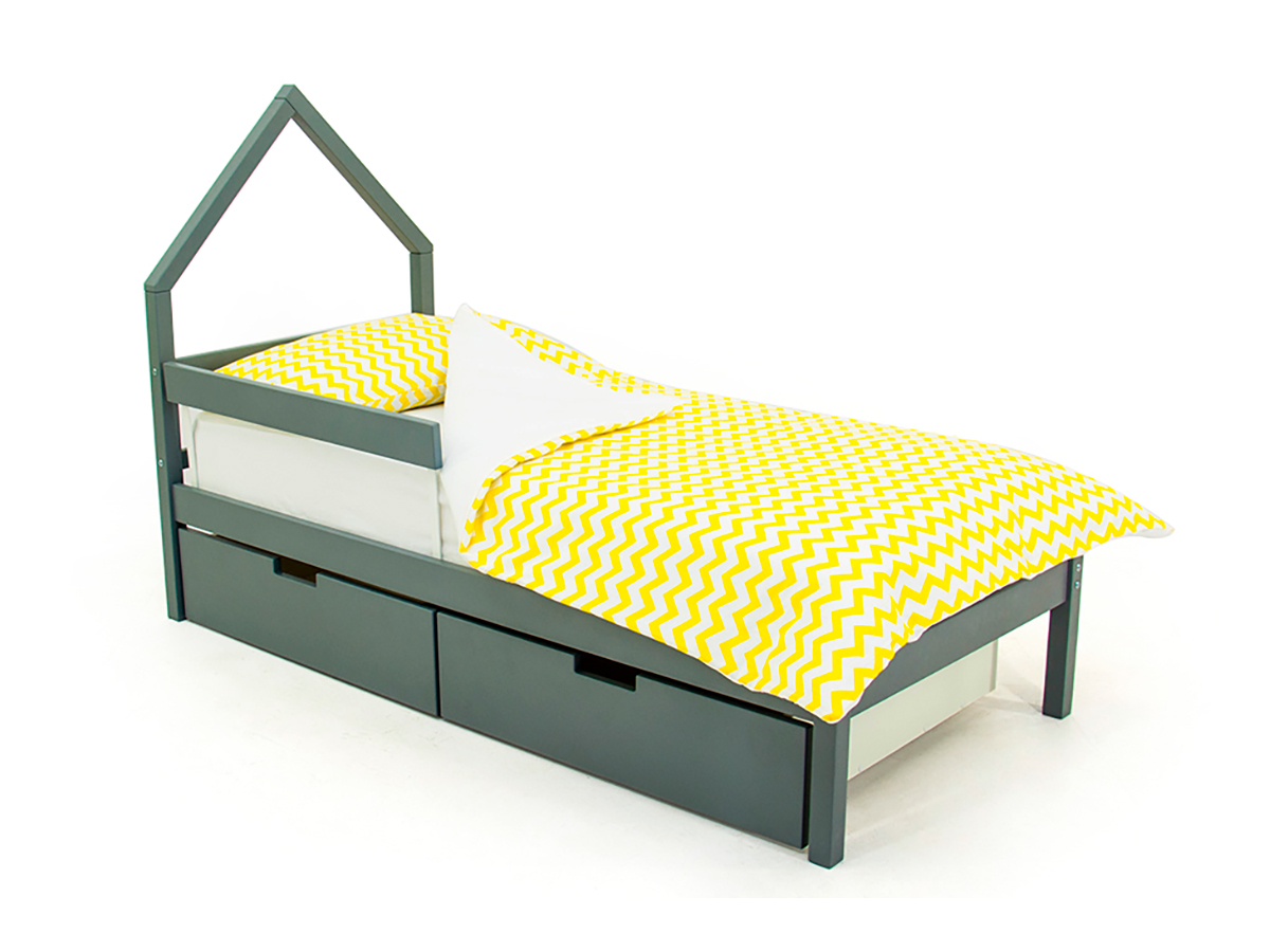 - Кровать-домик мини Svogen с ящиками и бортиком графит