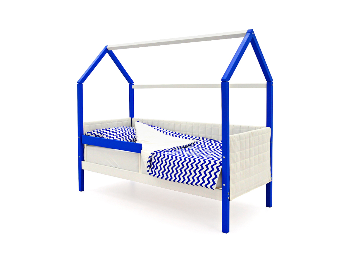 - Кровать-домик мягкий Svogen с бортиком сине-белый