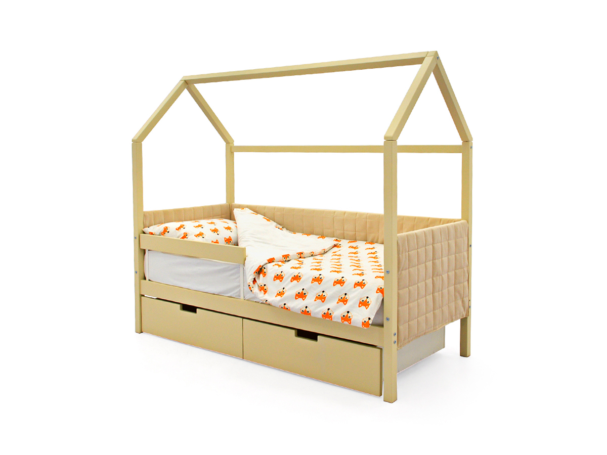 - Кровать-домик мягкий Svogen с ящиками и бортиком бежевый