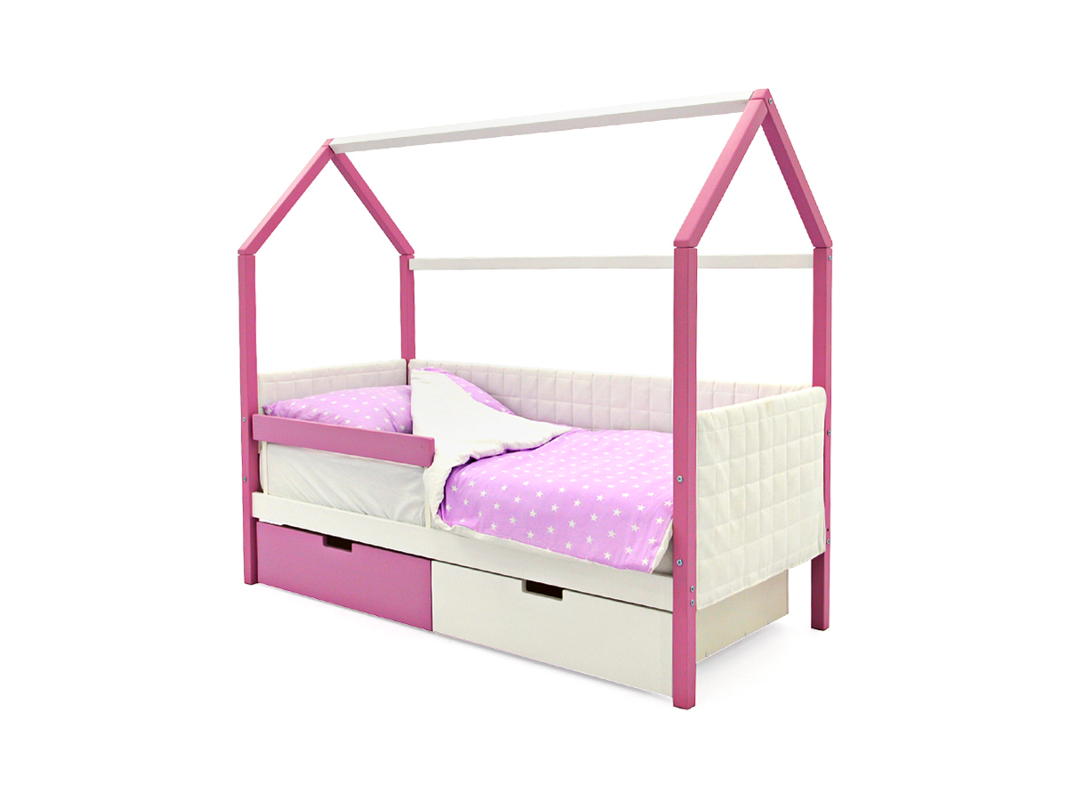 - Кровать-домик мягкий Svogen с ящиками и бортиком лаванда-белый