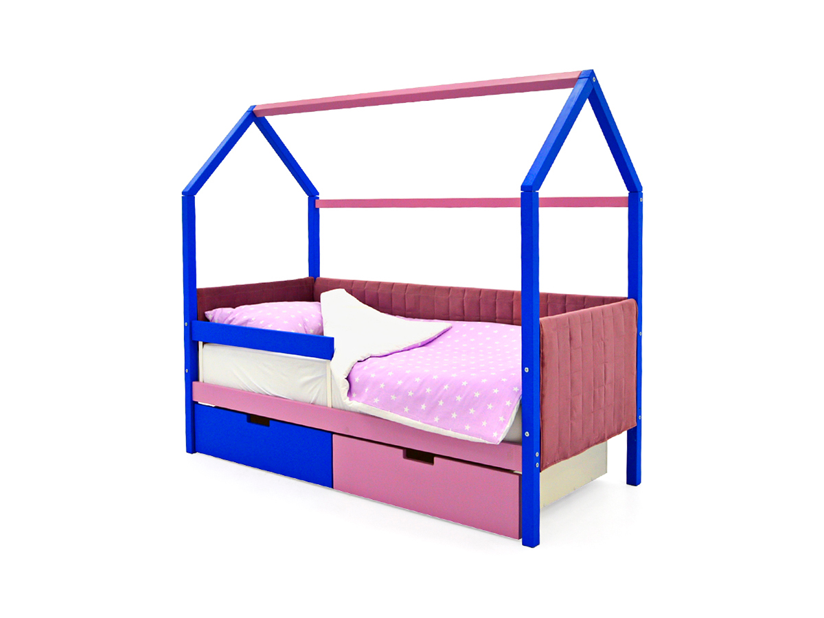 - Кровать-домик мягкий Svogen с ящиками и бортиком синий-лаванда