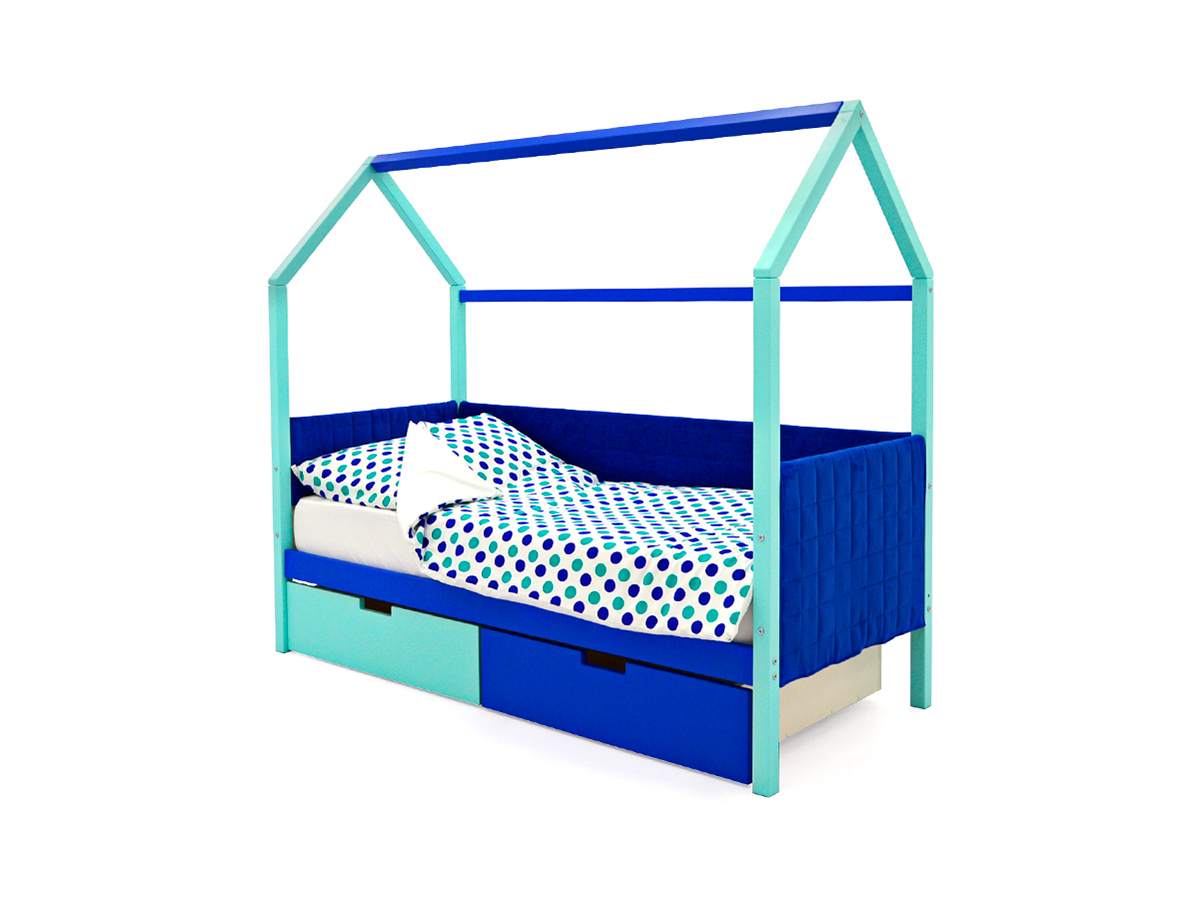 - Кровать-домик мягкий Svogen с ящиками мятно-синий