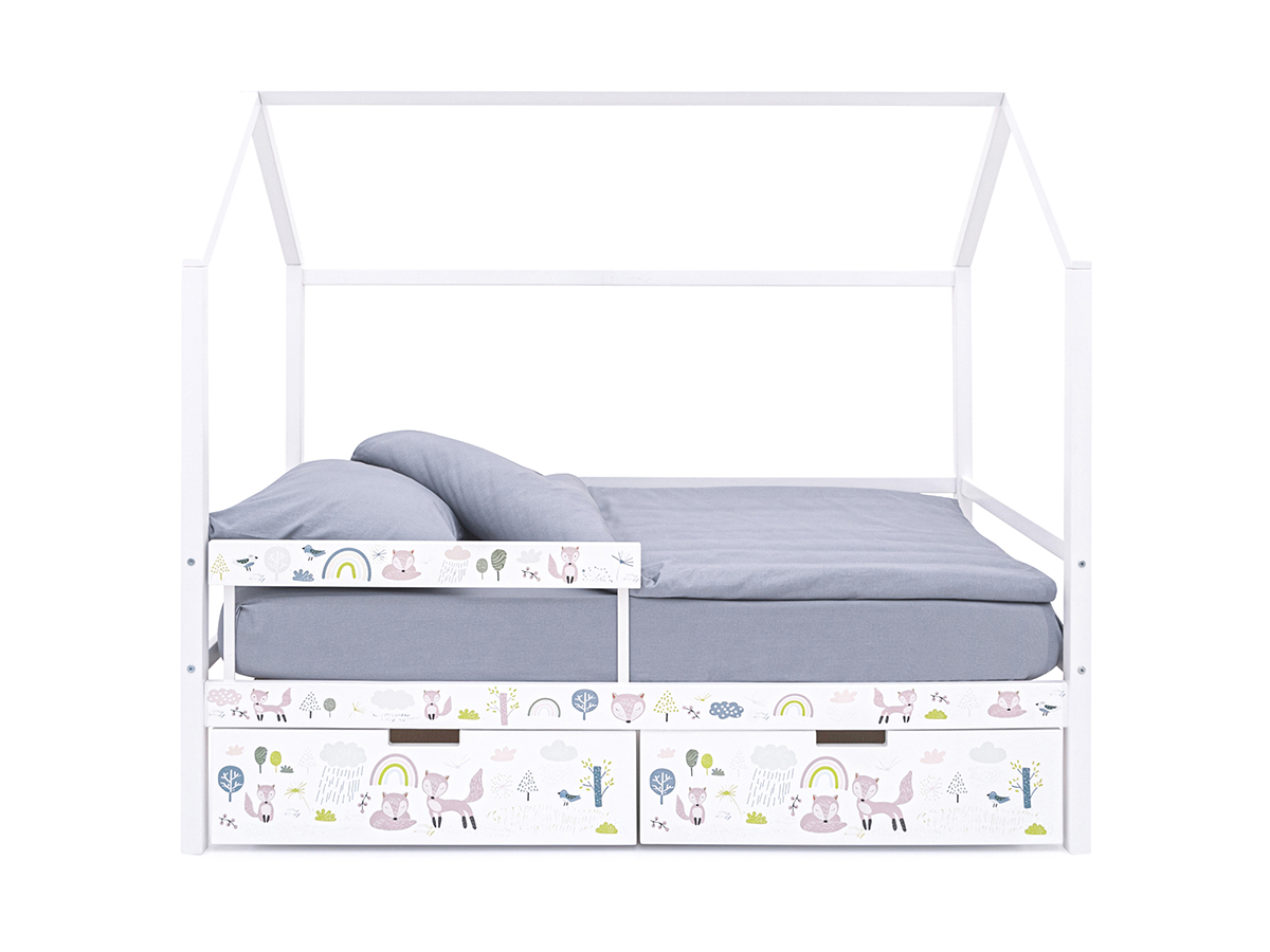 Кровать-домик Svogen с фото с ящиками и бортиком белый/лисята