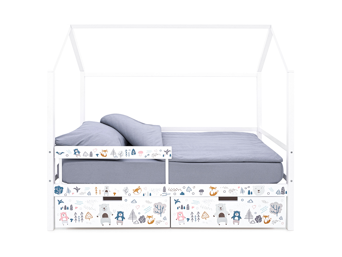 Кровать-домик Svogen с фото с ящиками и бортиком белый/мишки