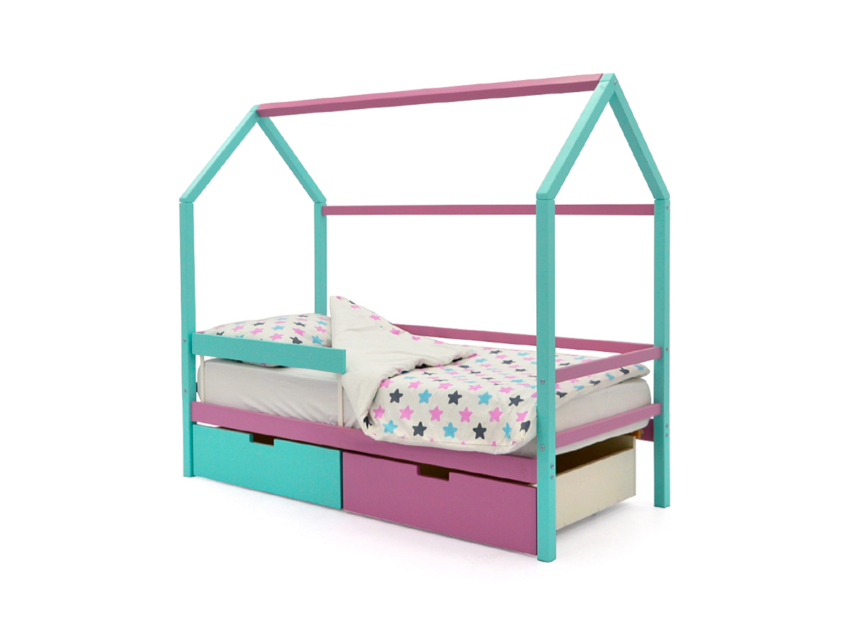 Кровать-домик Svogen с ящиками и бортиком мятный-лаванда