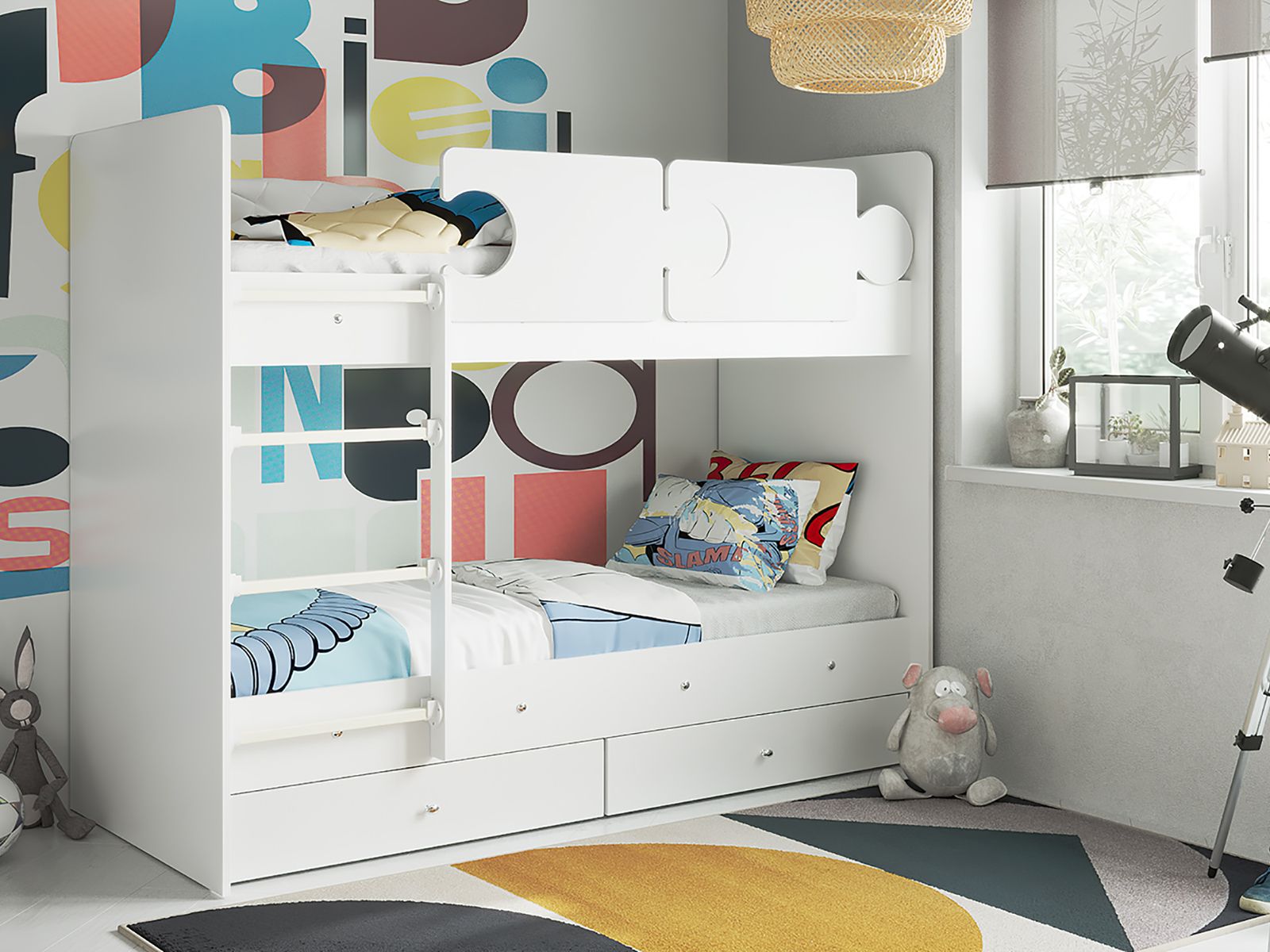- Кровать двухъярусная Тетрис латы с бортиками белый