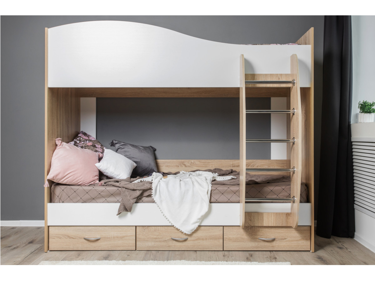 Кровать Mamamia двухъярусная с ящиками КР-05 Дуб сонома-Белый
