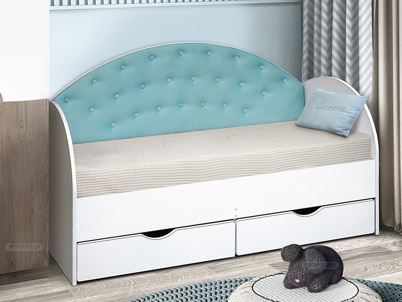 - Кровать с продольной мягкой спинкой Софа №10 бирюза 800х1900