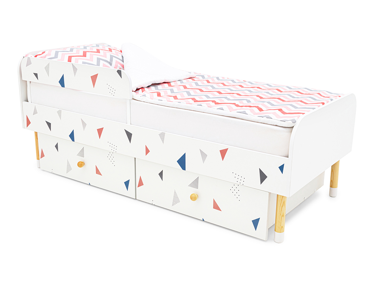 - Кровать Stumpa Классика бортиком и ящиками Треугольники розовый, синий