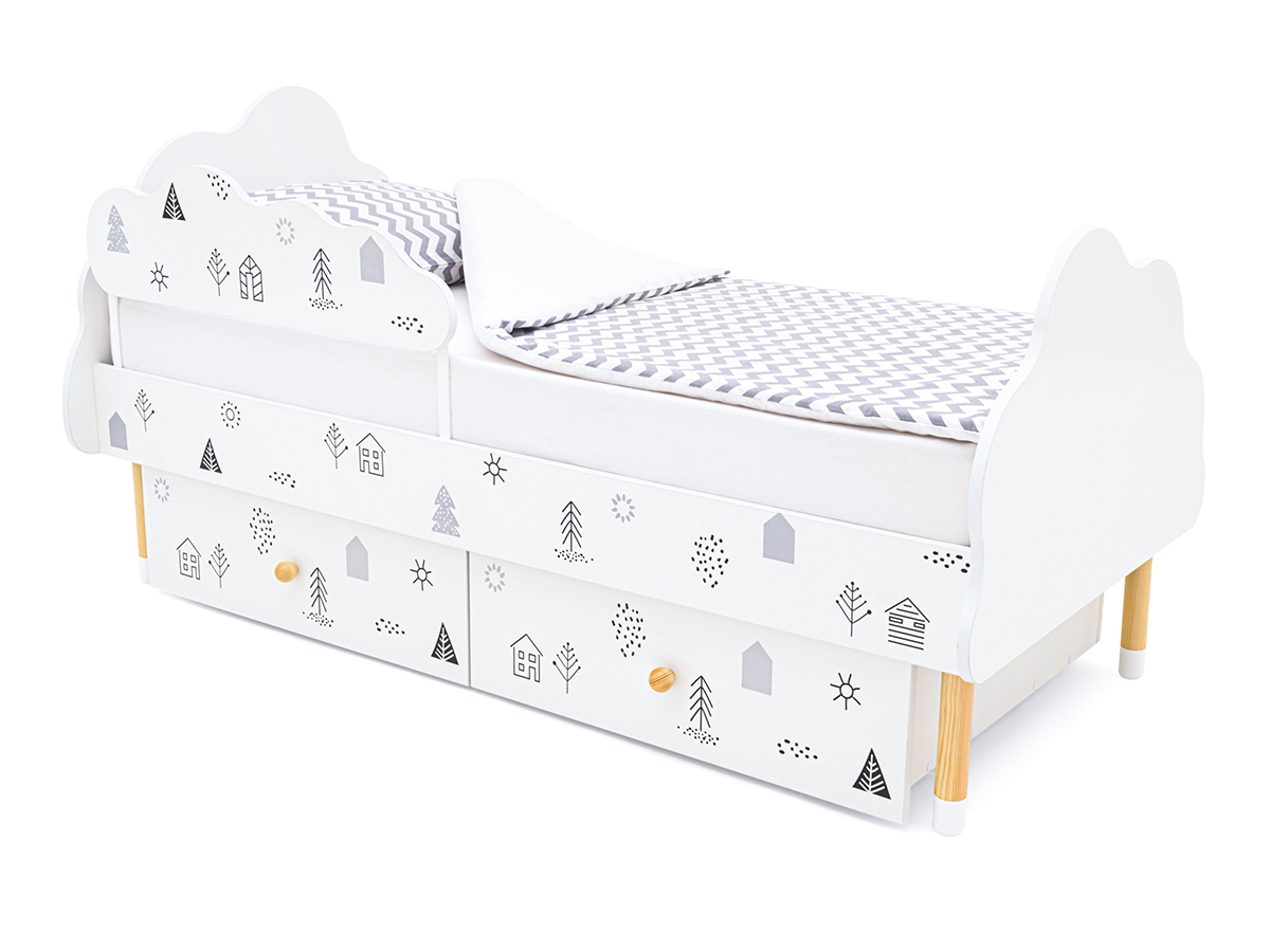 Кровать Stumpa Облако бортик и ящики рисунок Домики