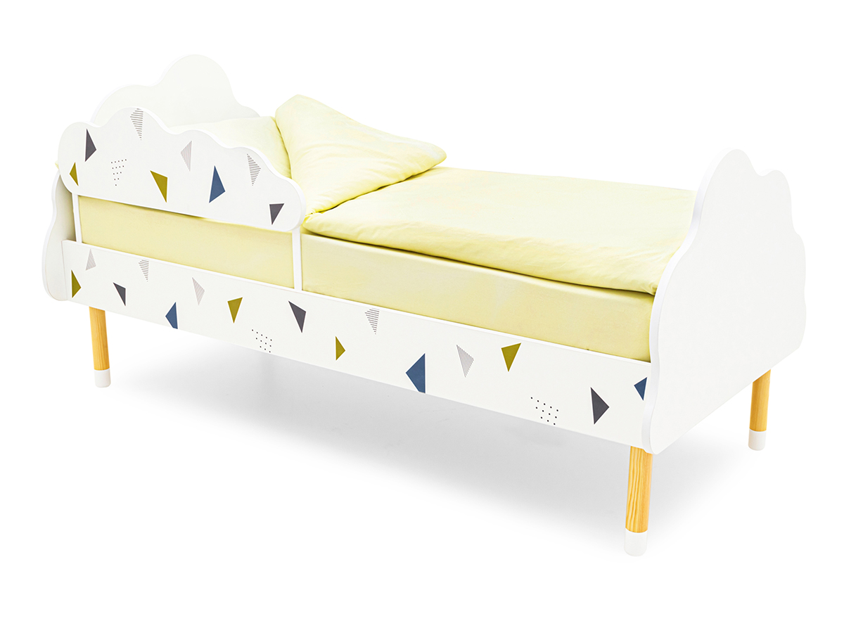 - Кровать Stumpa Облако с бортиком рисунок Треугольники зеленый, синий