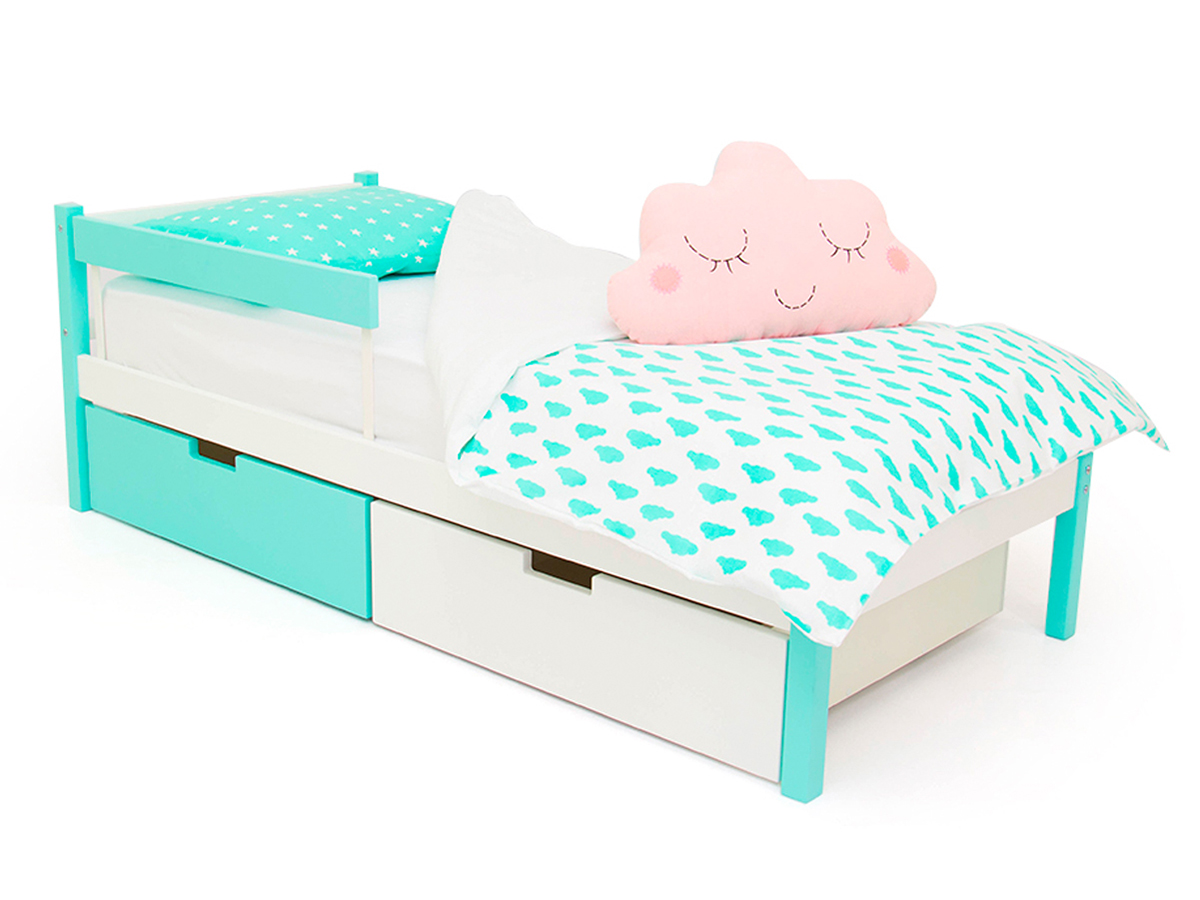 Кровать Svogen classic с ящиками и бортиком мятно-белый