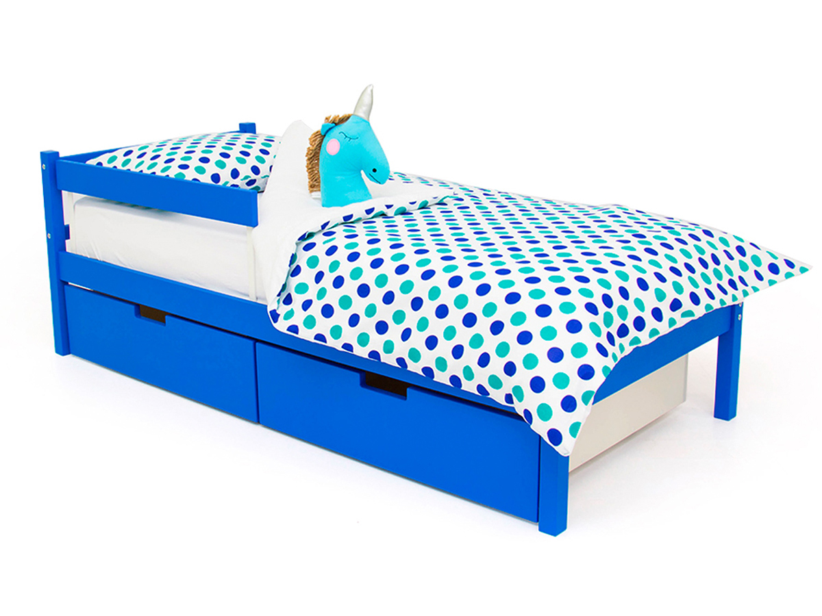 - Кровать Svogen classic с ящиками и бортиком синий