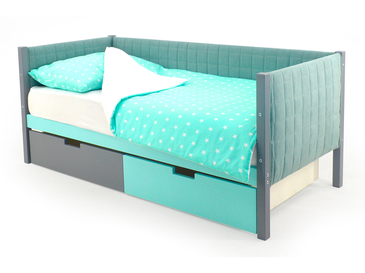 - Кровать-тахта мягкая Svogen с ящиками графит-мятный