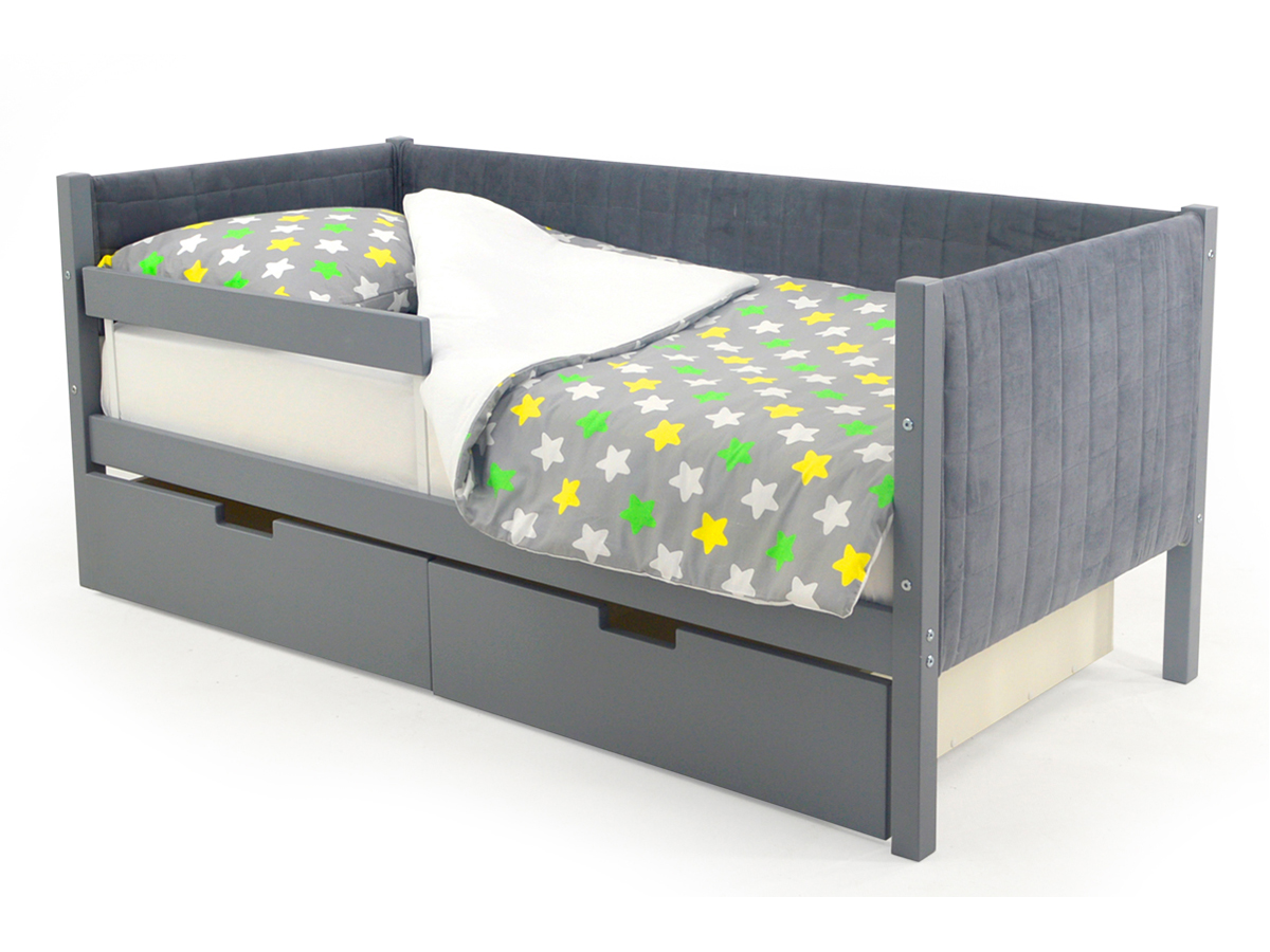 - Кровать-тахта мягкая Svogen с ящиками и бортиками графит