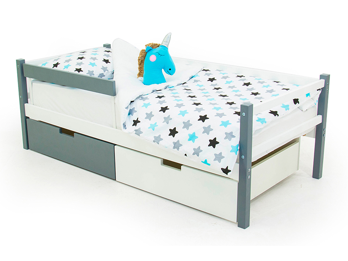 Кровать-тахта Svogen с ящиками и бортиком графит-белый