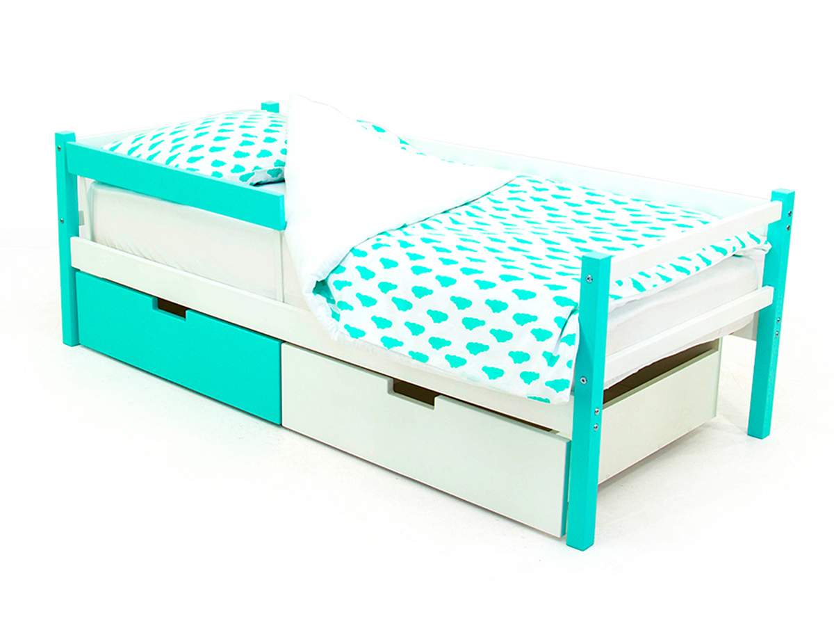 Кровать-тахта Svogen с ящиками и бортиком мятно-белый