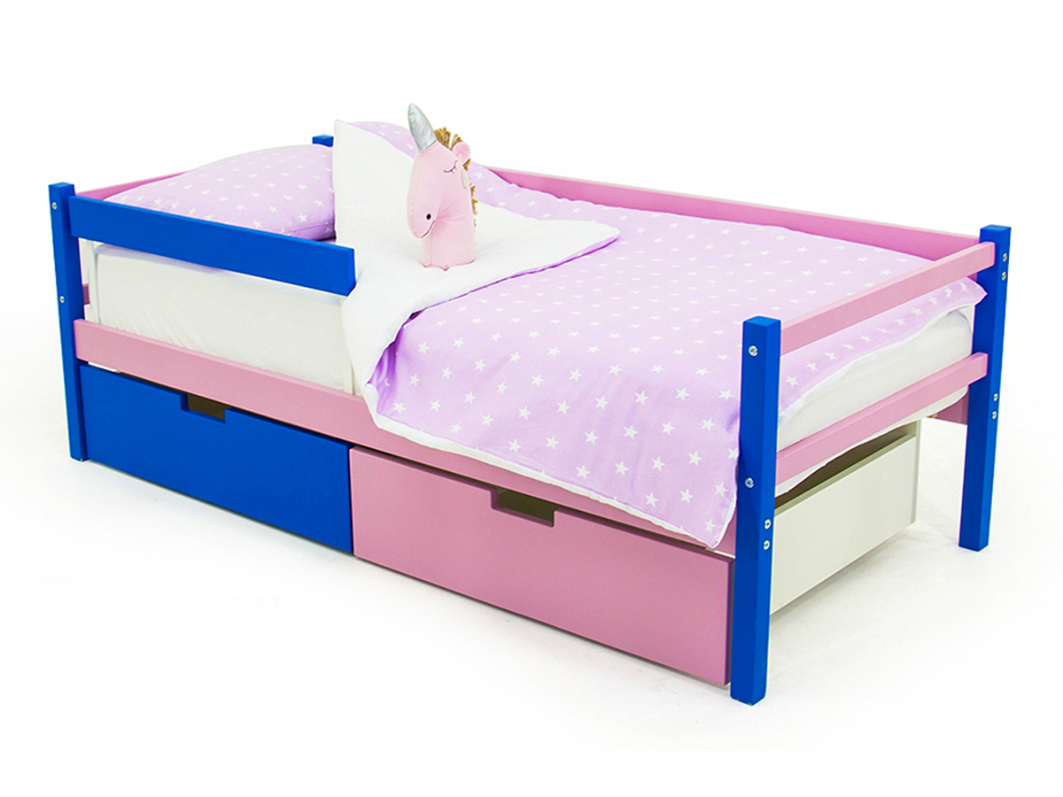 Кровать-тахта Svogen с ящиками и бортиком синий-лаванда